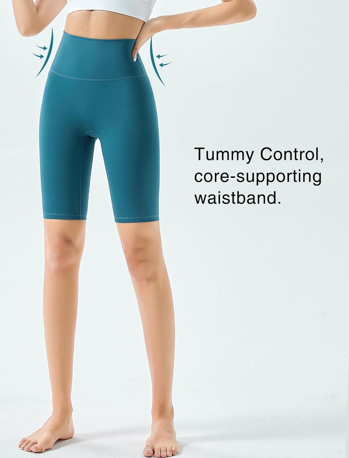 imageYvette Womens Biker Shorts Tummy Control High Waist Running Workout Yoga ShortsSea Blue
