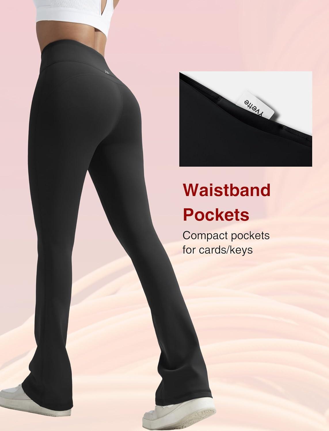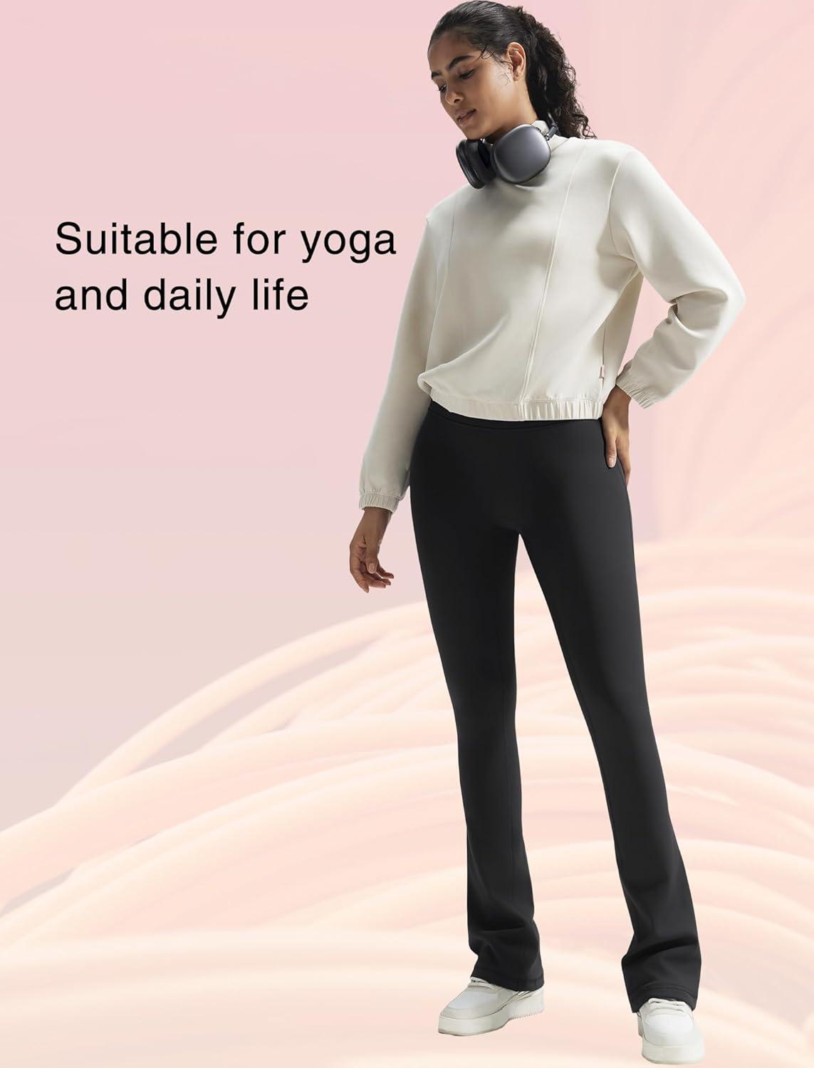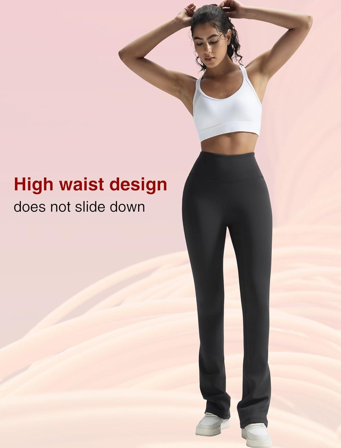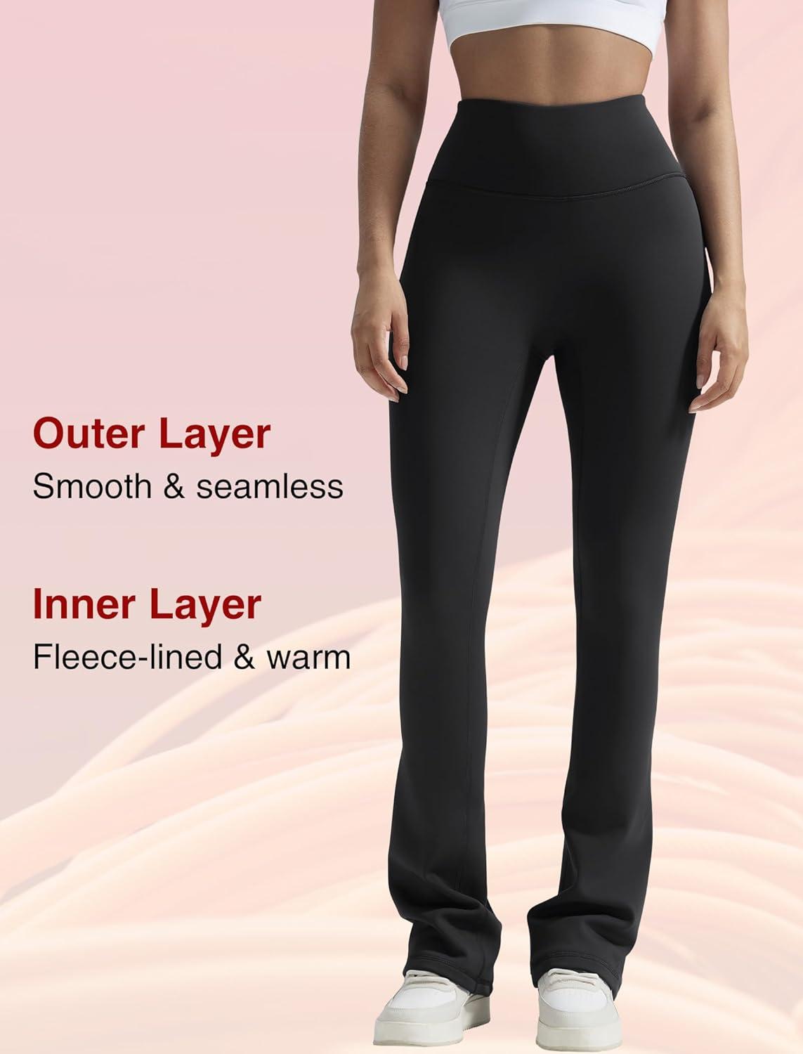 imageYvette Womens Flare FleeceLined Leggings High Waisted Yoga Pants for Daily WearBlack