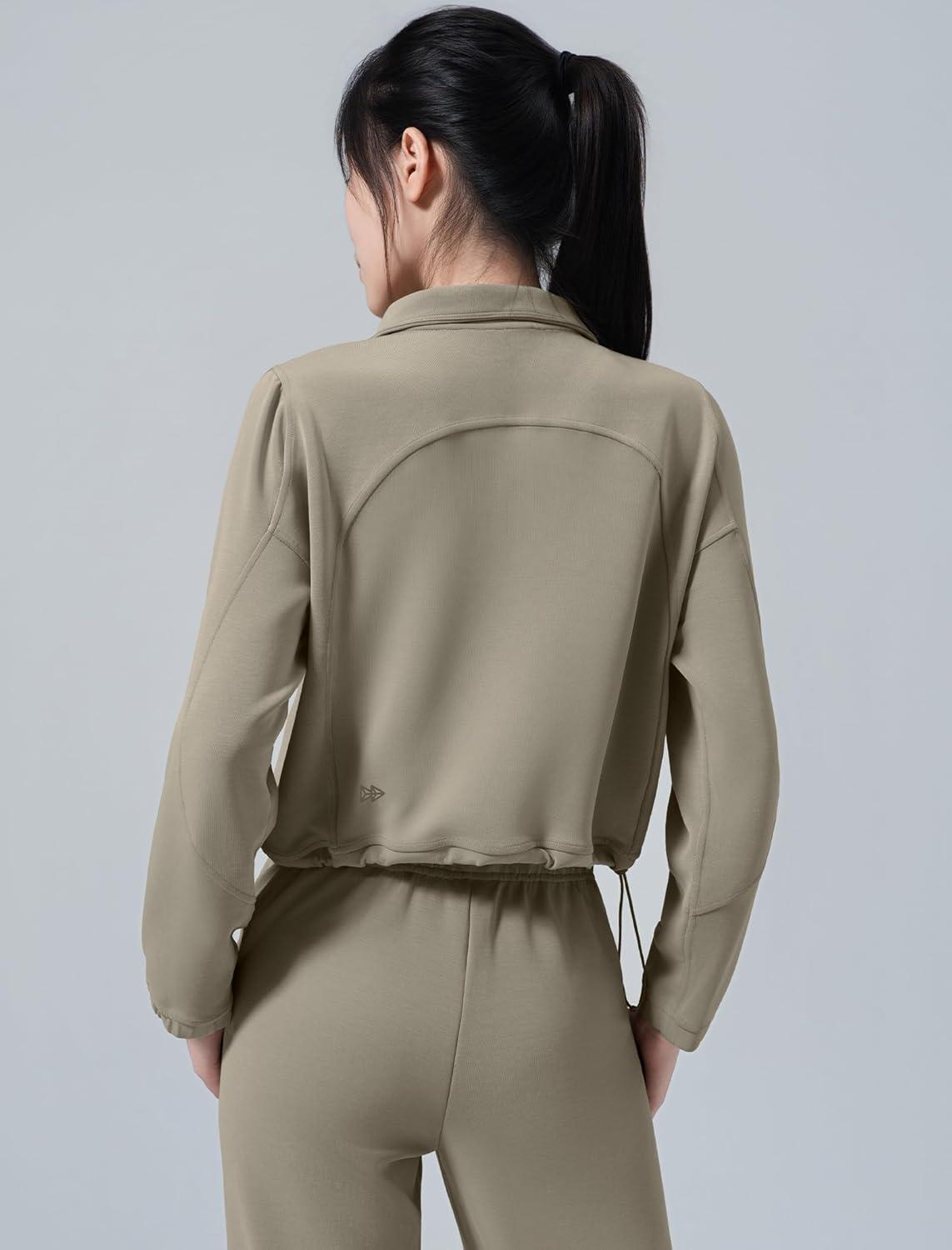 Yvette Womens' Half Zip Pullover Stand Collar Cropped Workout Sweatshirt with Pockets Long Sleeve Shirts Clothes(Brown)