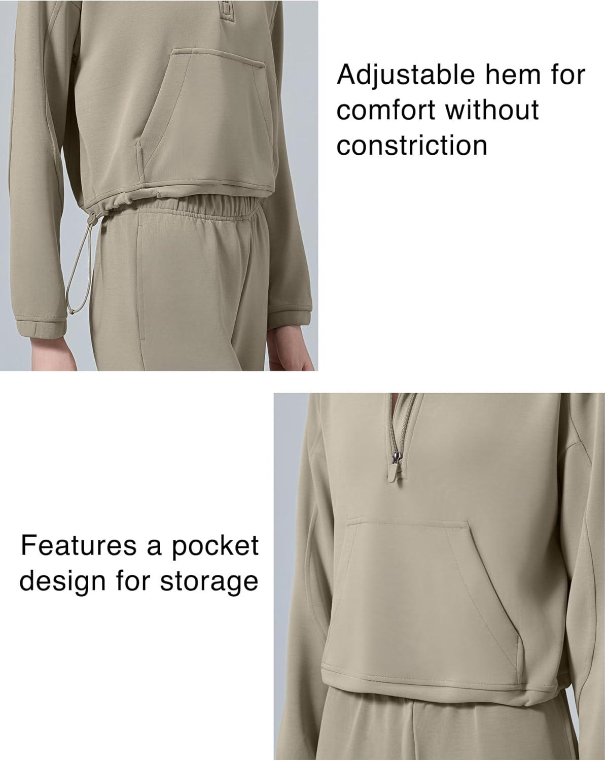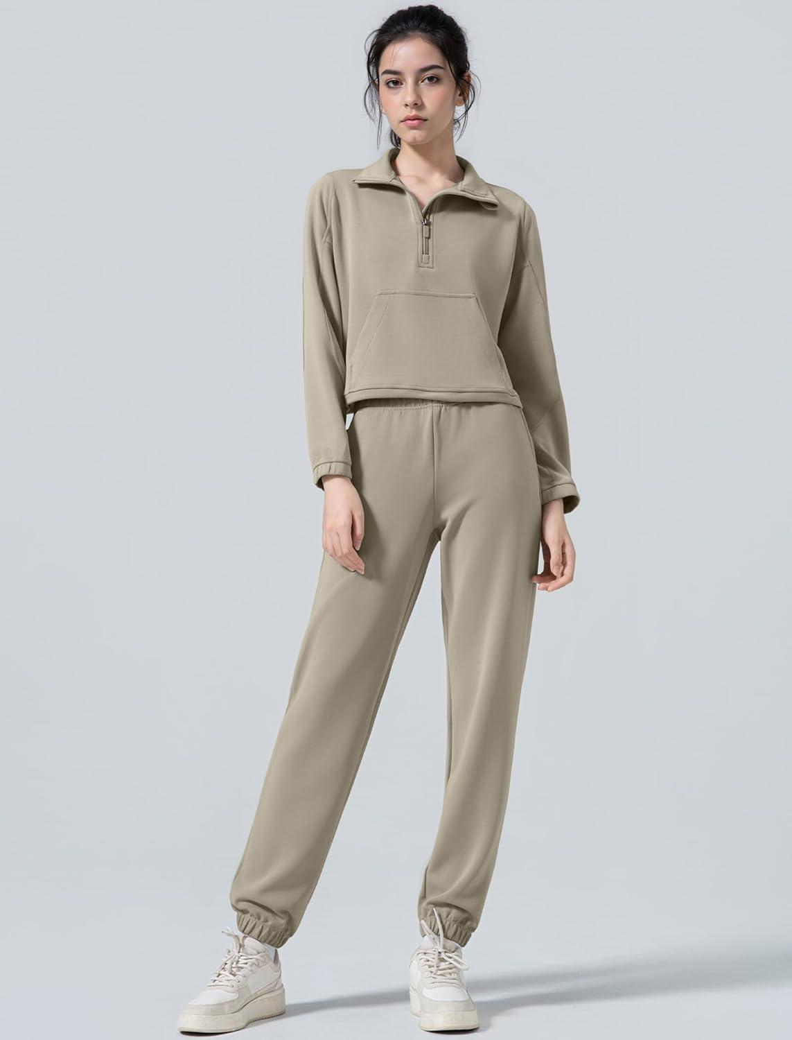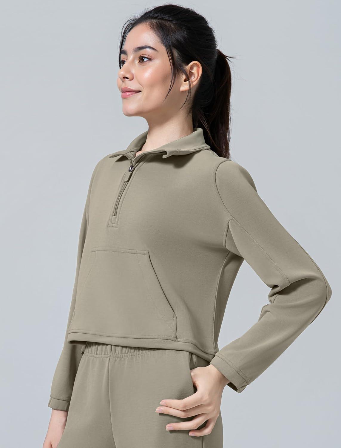 imageYvette Womens Half Zip Pullover Stand Collar Cropped Workout Sweatshirt with Pockets Long Sleeve Shirts ClothesBrown