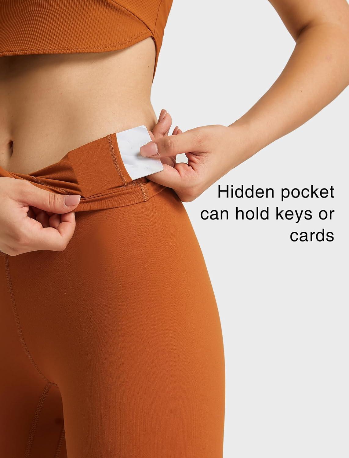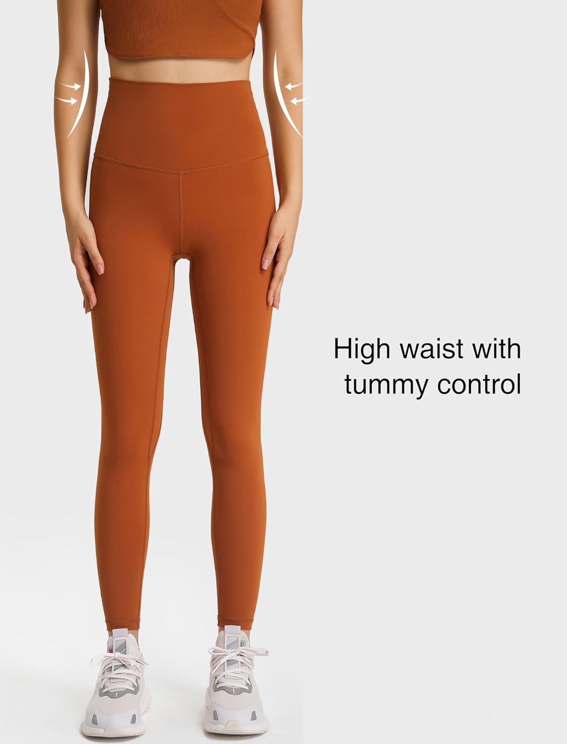 imageYvette Womens High Waist Athletic Leggings with Inner Pockets Tummy Control TightsBrown