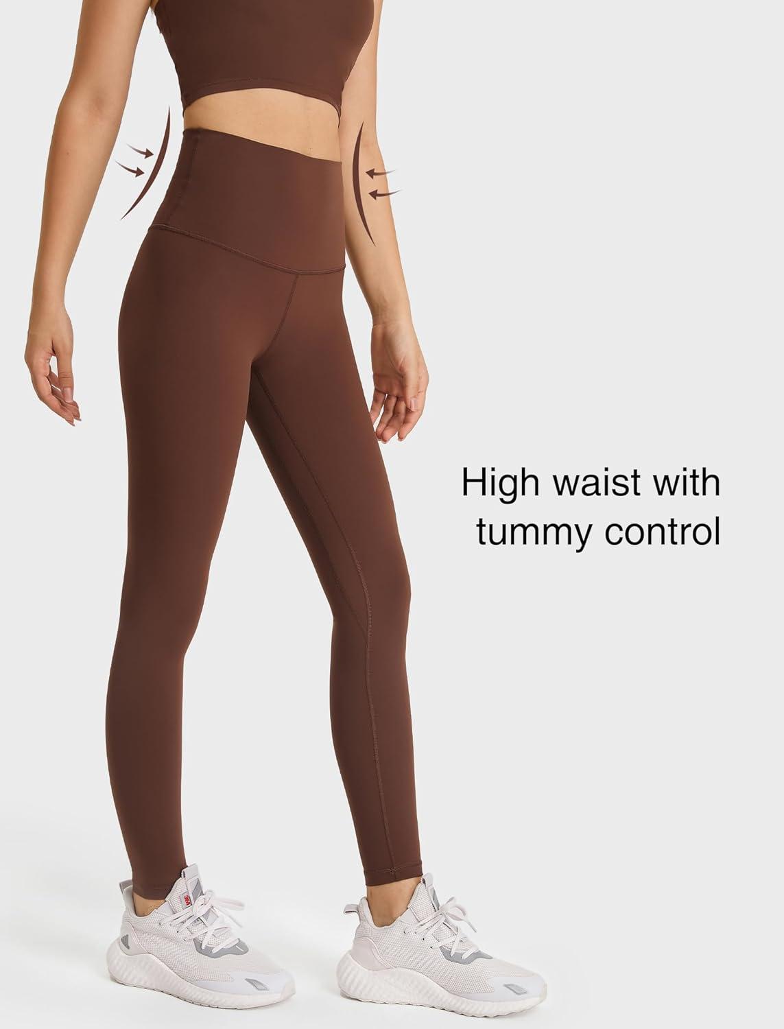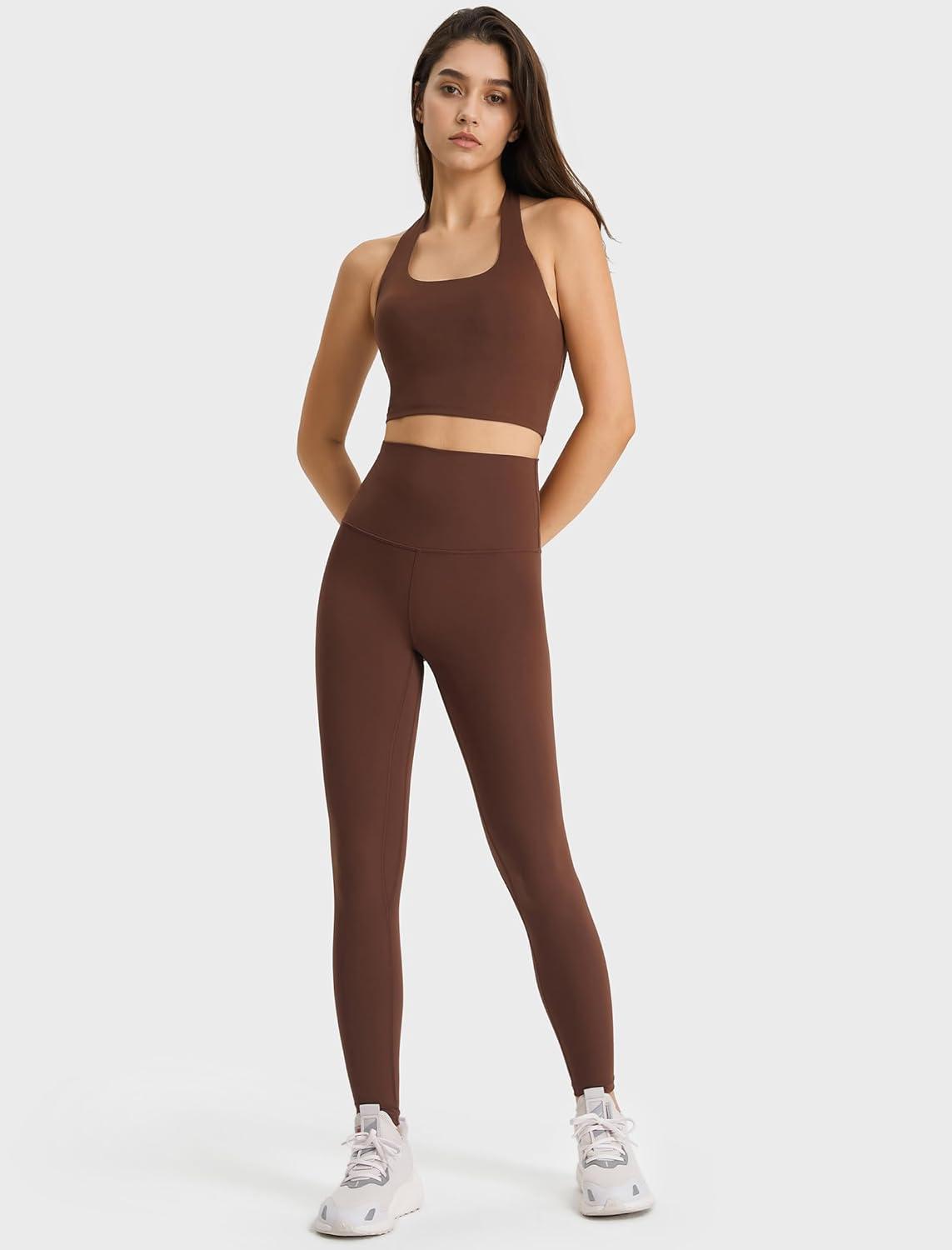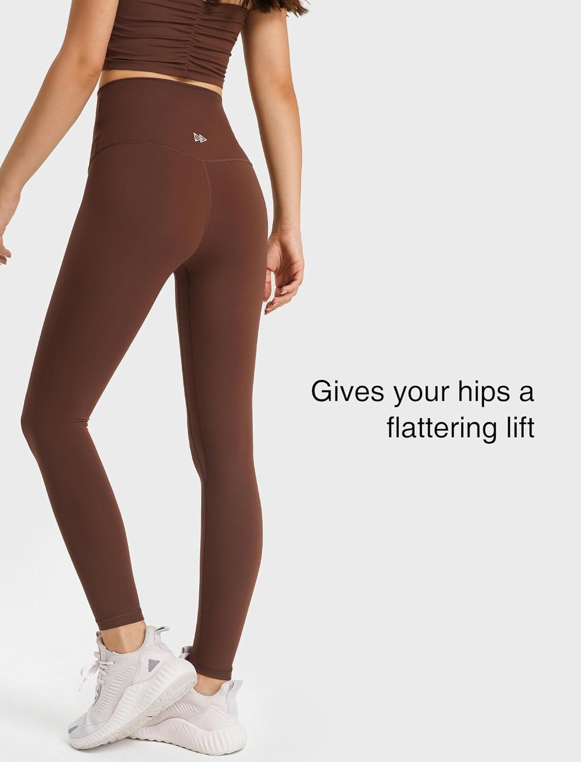 Yvette Womens High Waist Athletic Leggings with Inner Pockets Tummy Control Tights(Coffee Brown)