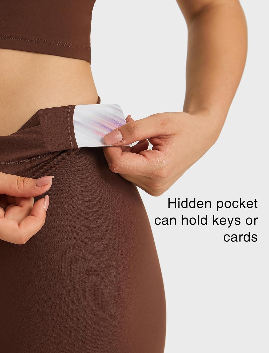 imageYvette Womens High Waist Athletic Leggings with Inner Pockets Tummy Control TightsCoffee Brown