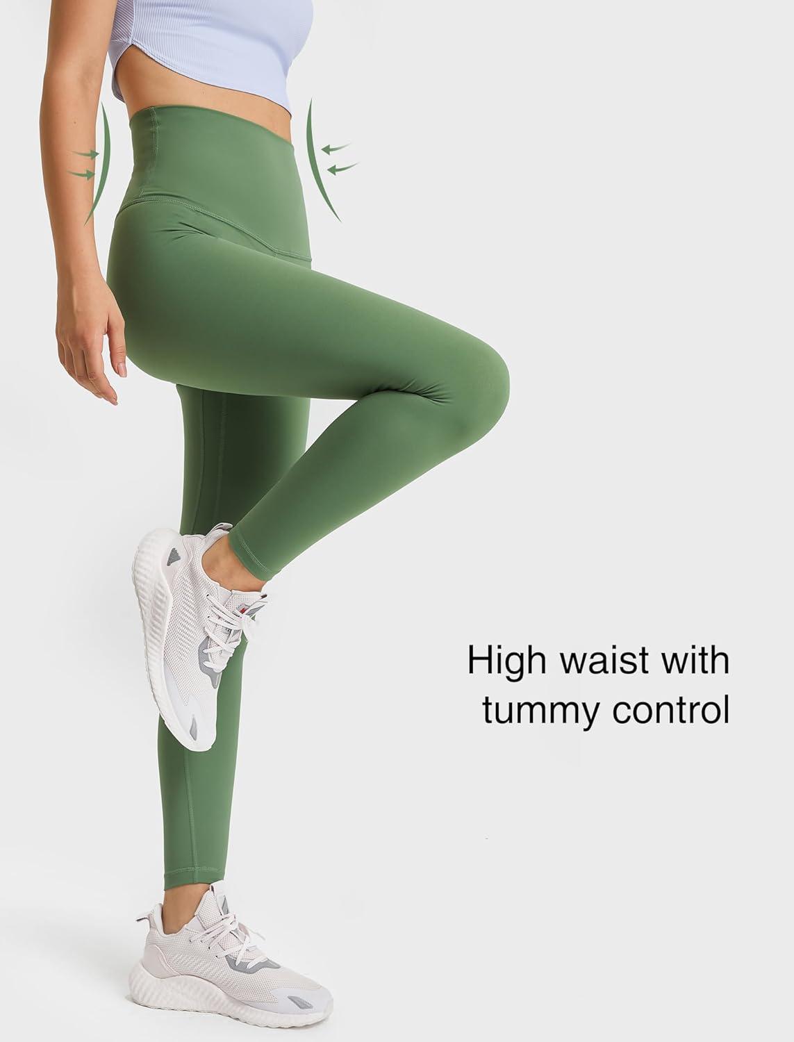 Yvette Womens High Waist Athletic Leggings with Inner Pockets Tummy Control Tights(Green)