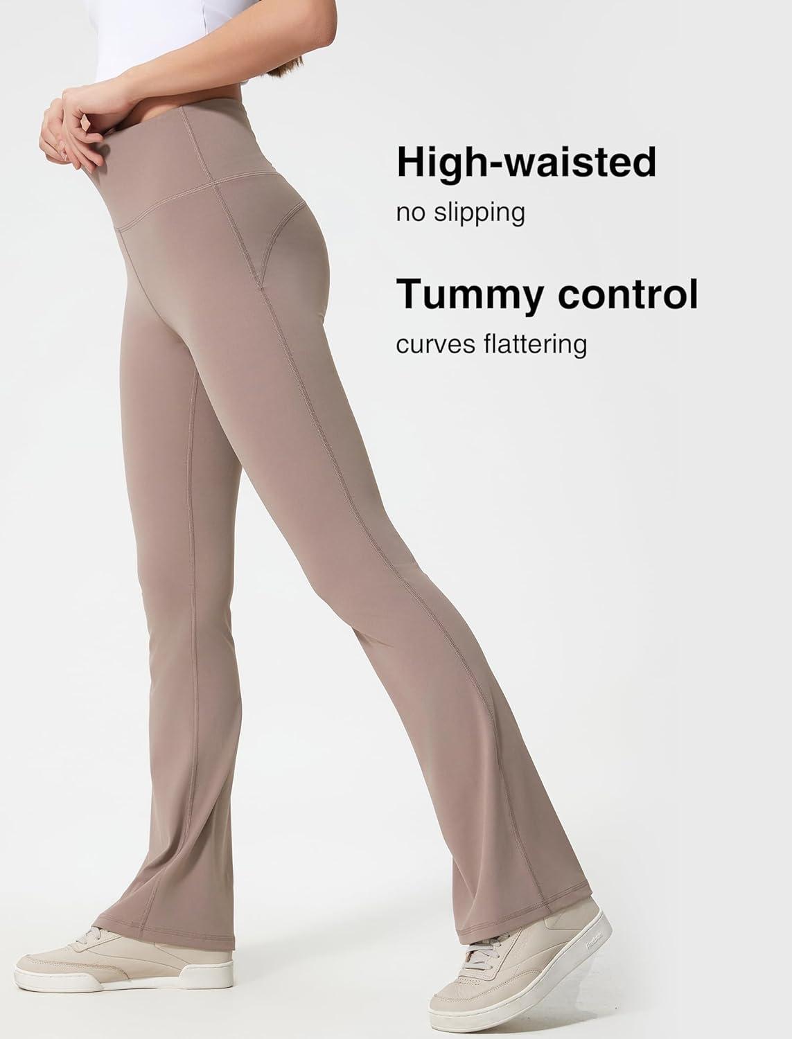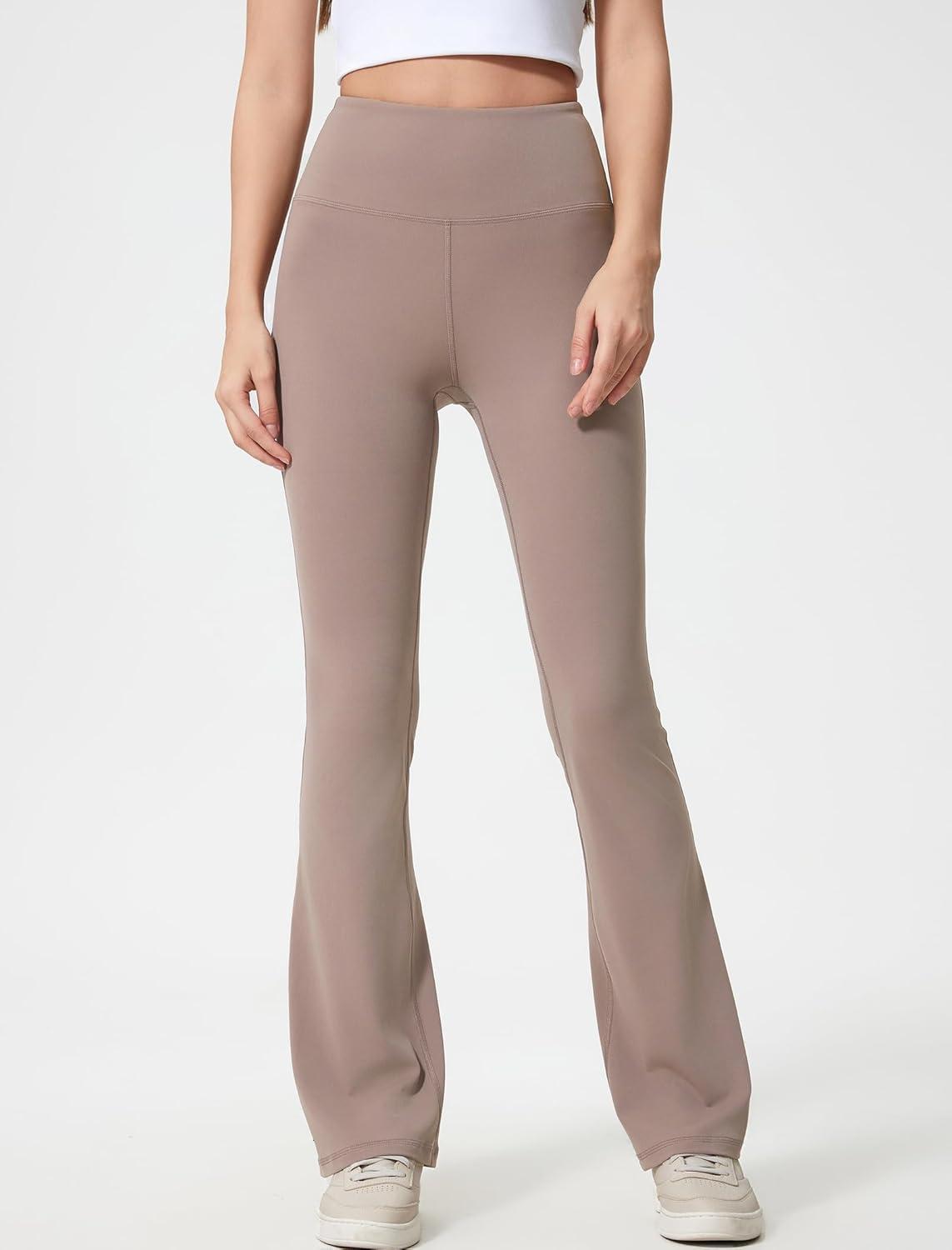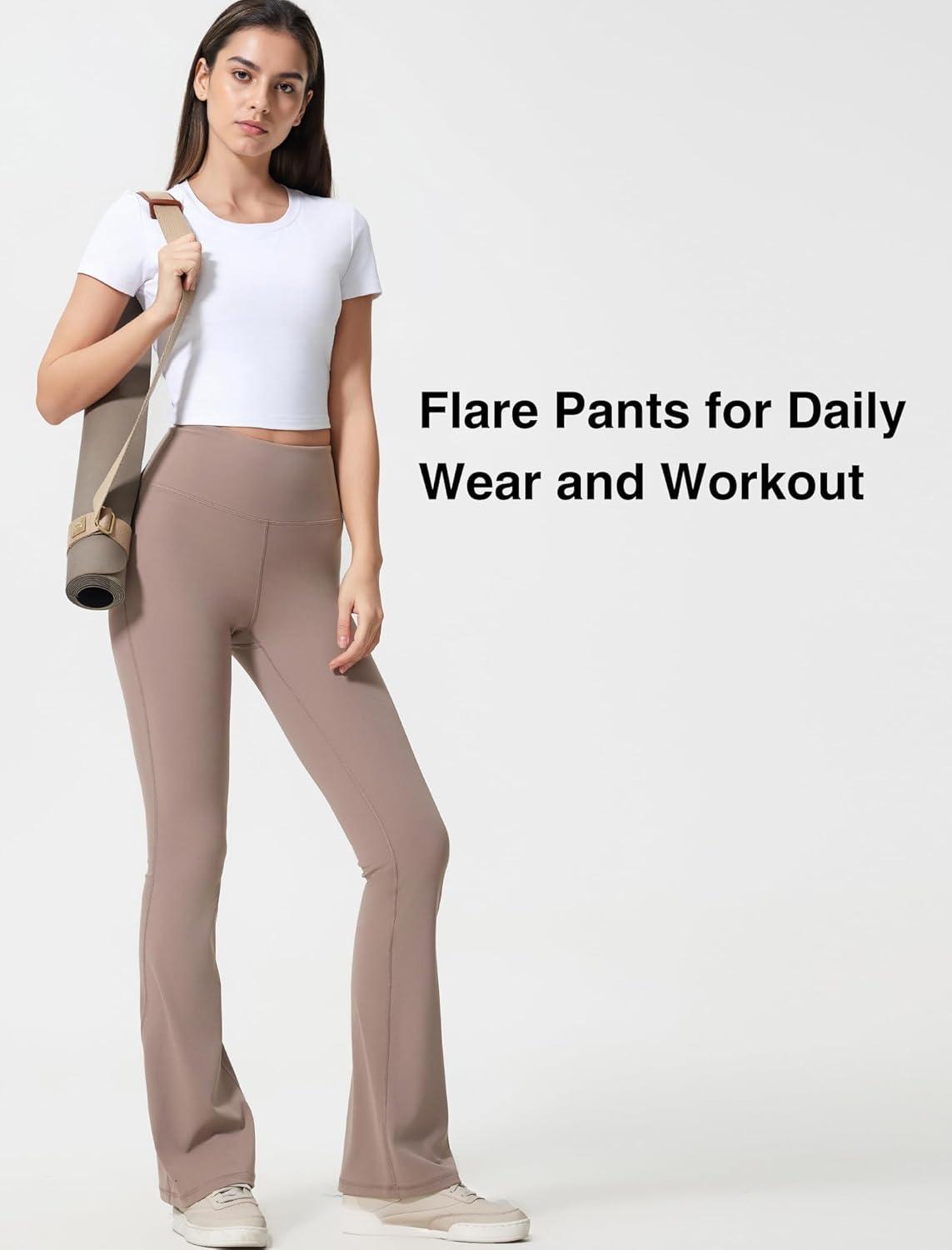 Yvette Womens High Waist Yoga Leggings Flare Pants for Workout Daily Wear(Grey)