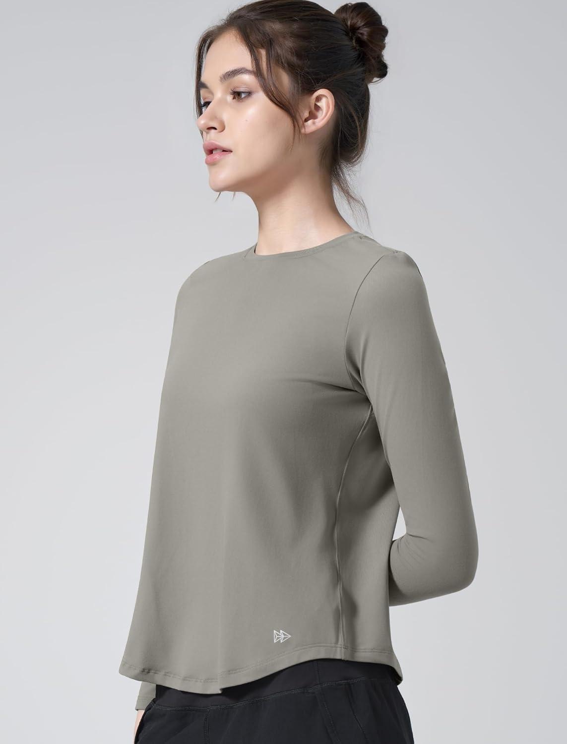 Yvette Women's Long Sleeve Athletic T-Shirts Workout Running Basic Tee Tank Top Gym Casual Shirts(Grey Khaki)