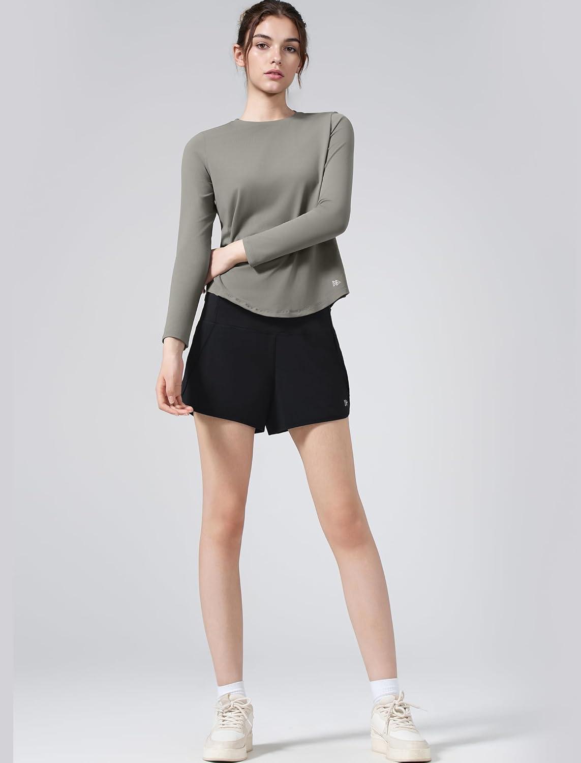 imageYvette Womens Long Sleeve Athletic TShirts Workout Running Basic Tee Tank Top Gym Casual ShirtsGrey Khaki