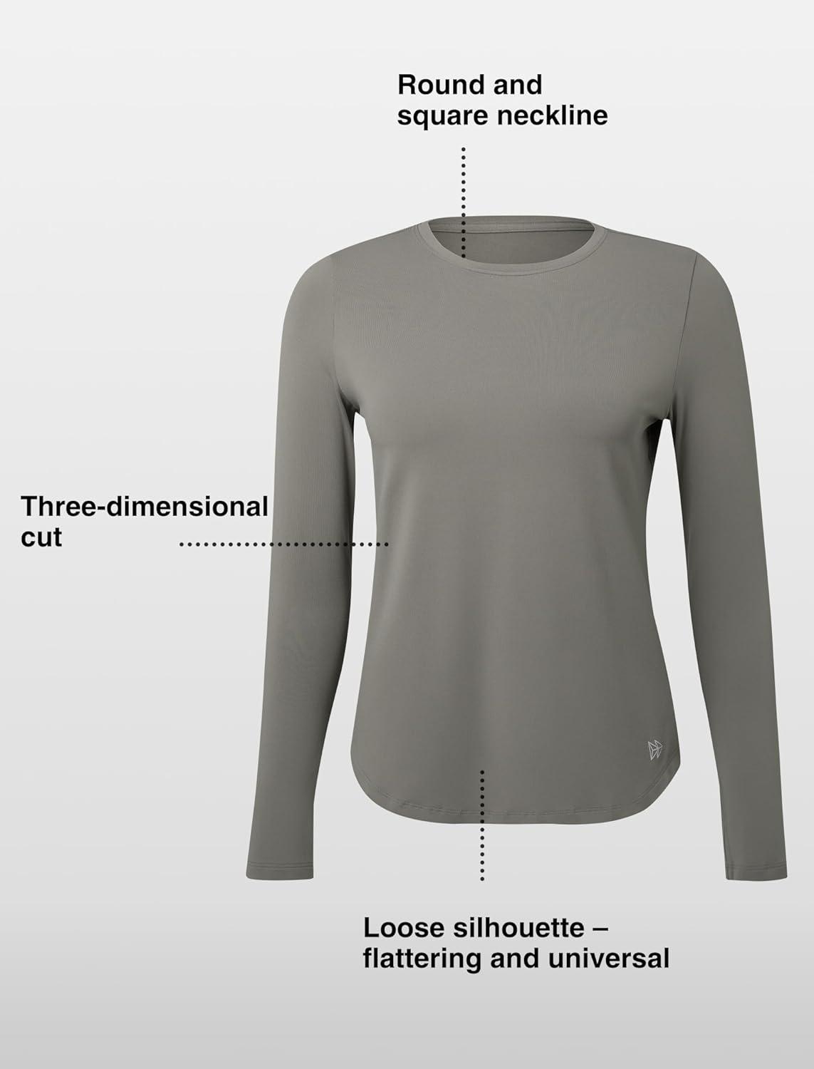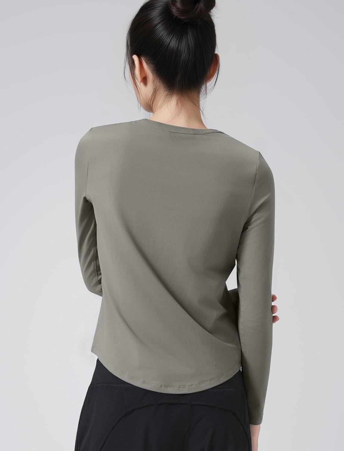 Yvette Women’s Long Sleeve Athletic T-Shirts Workout Running Basic Tee Tank Top Gym Casual Shirts(Grey Khaki)