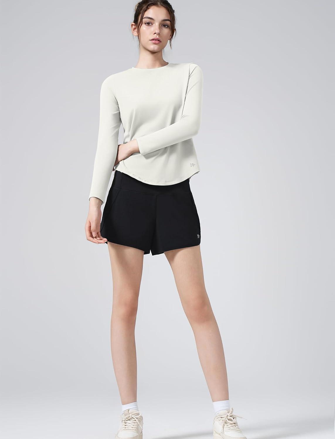 imageYvette Womens Long Sleeve Athletic TShirts Workout Running Basic Tee Tank Top Gym Casual ShirtsOffwhite