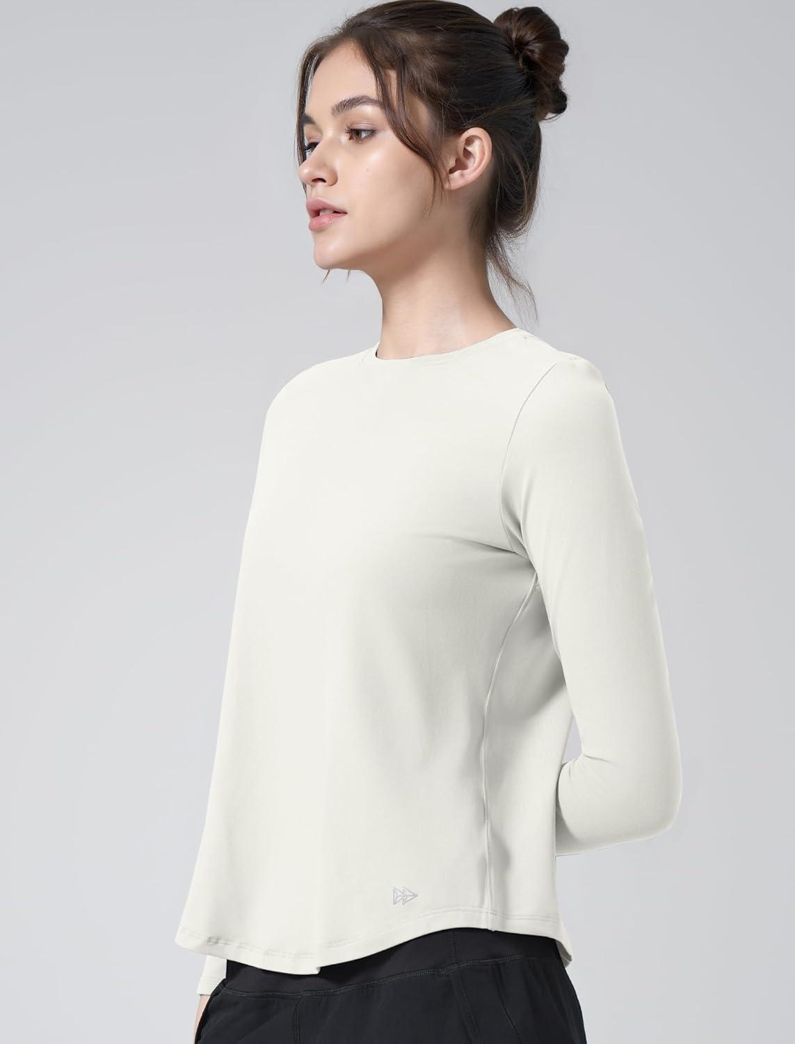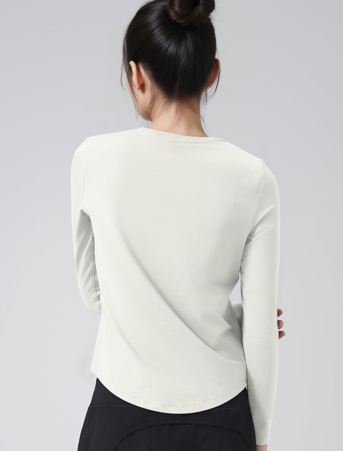 Yvette Women's Long Sleeve Athletic T-Shirts Workout Running Basic Tee Tank Top Gym Casual Shirts(Off-white)