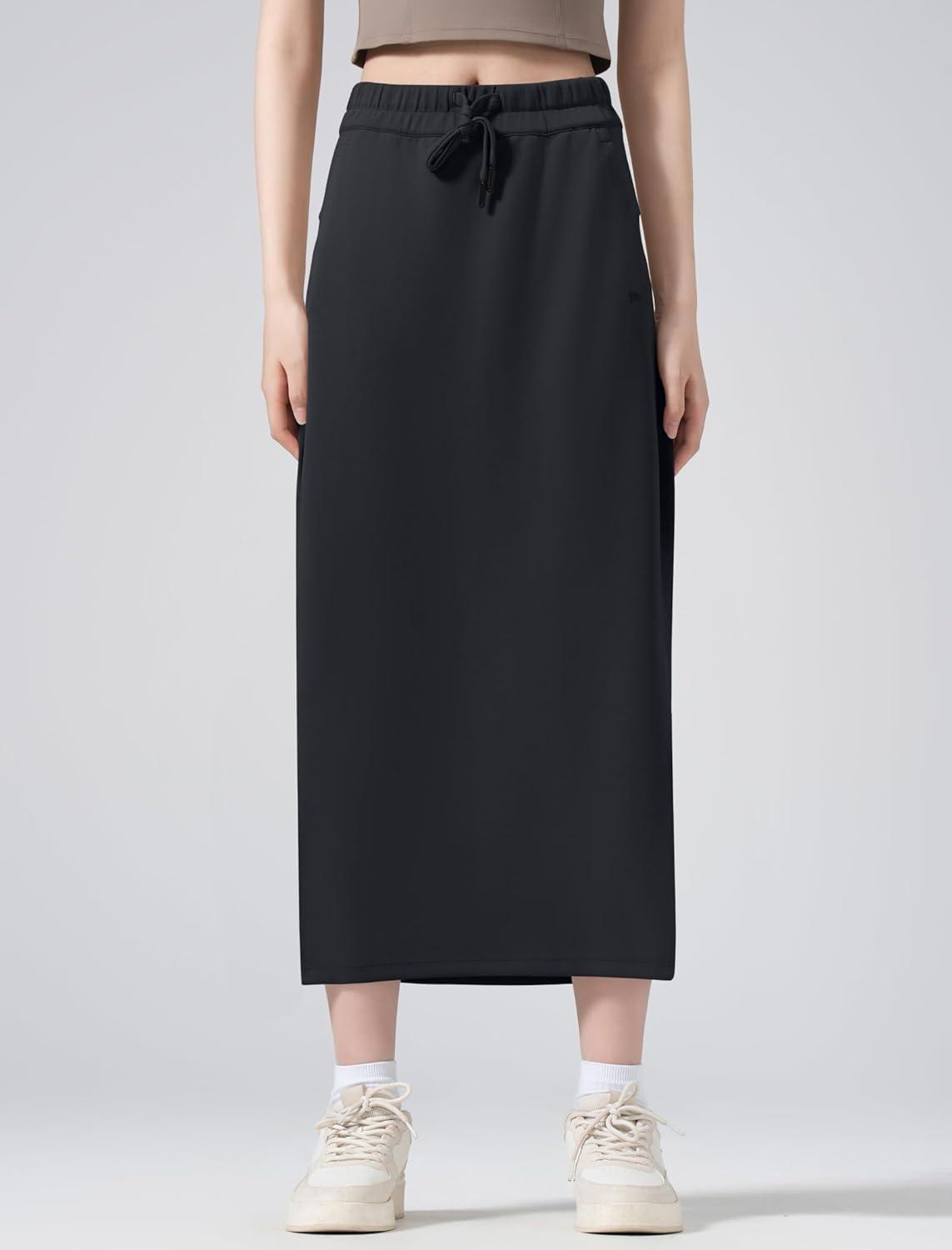 Yvette Women's Midi Length Athletic Skirts High Waist Tennis Skirts for Women(Black)