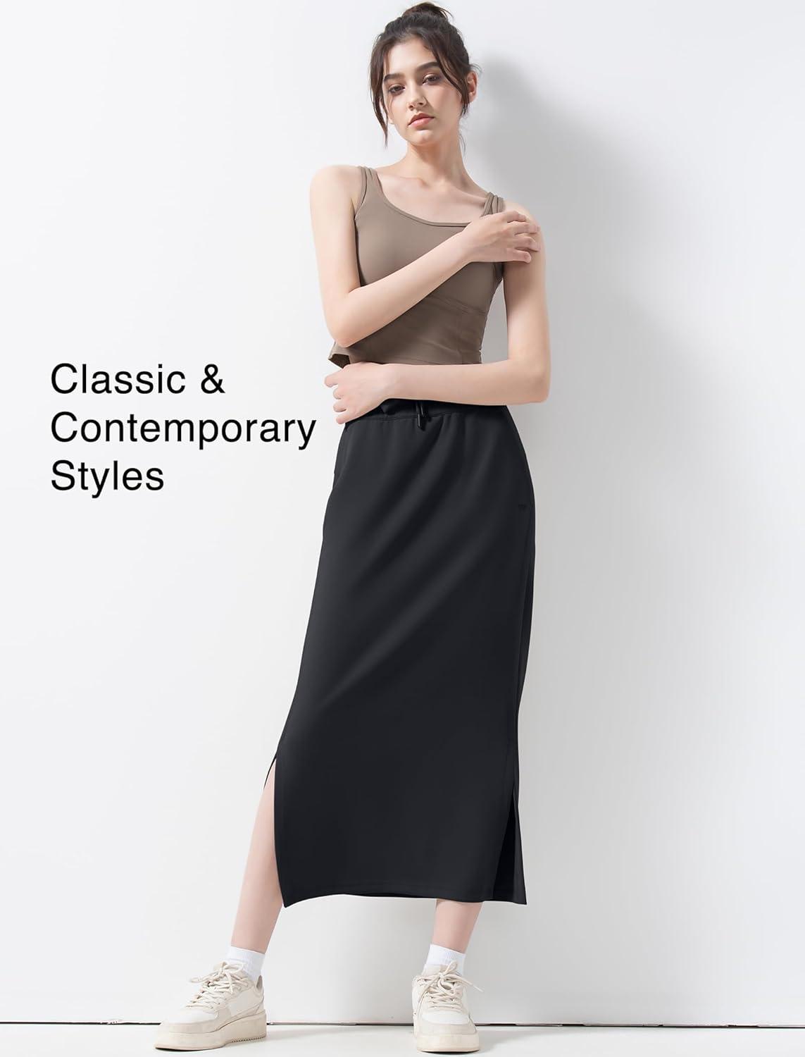 Yvette Women’s Midi Length Athletic Skirts High Waist Tennis Skirts for Women(Black)