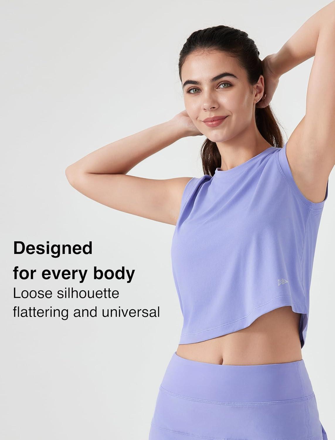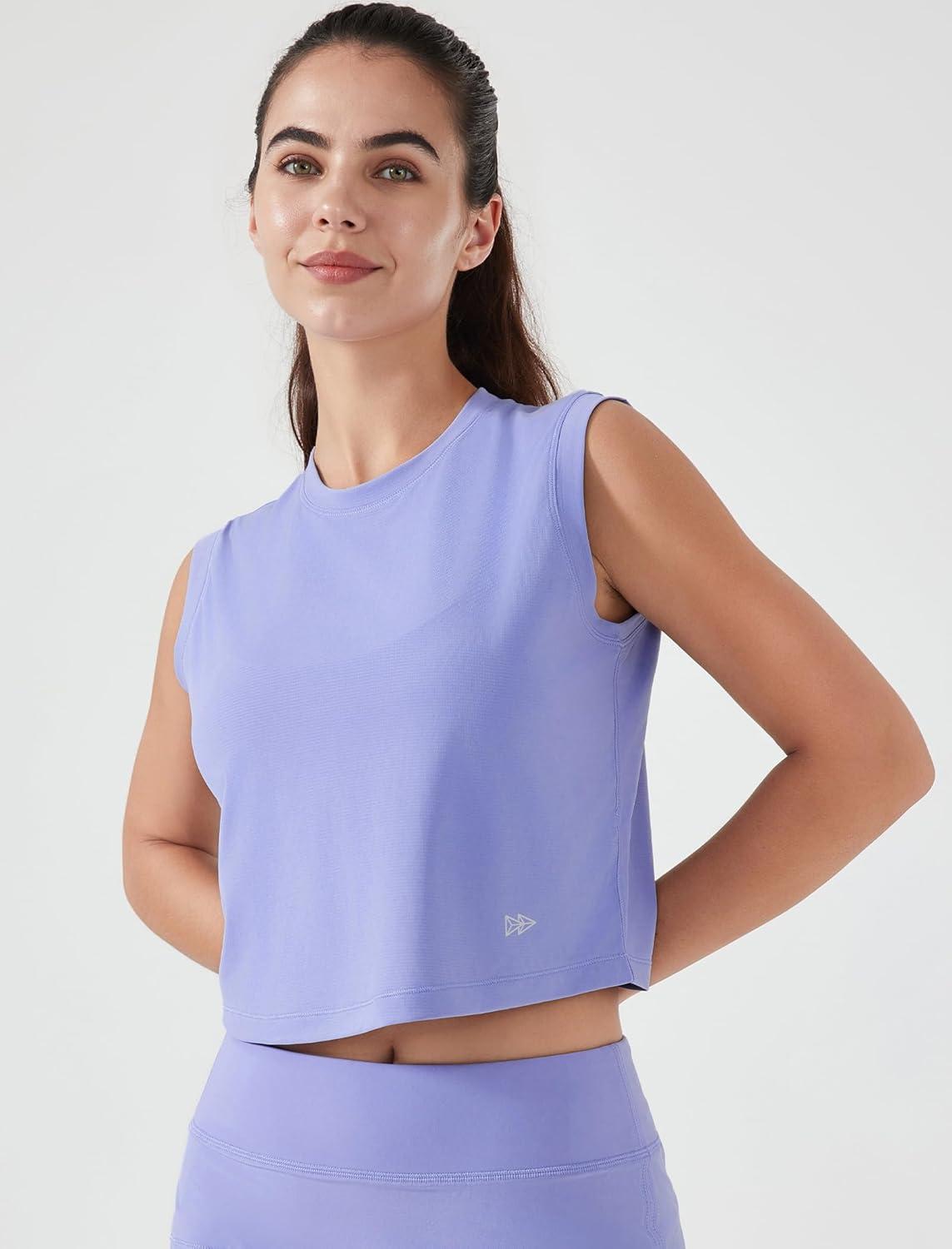 Yvette Women's Sleeveless Crop Tank Tops Athletic Breathable Lightweight Workout Tennis Yoga Running Tee Shirts(Purple)
