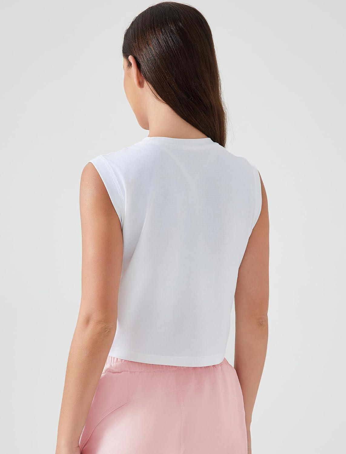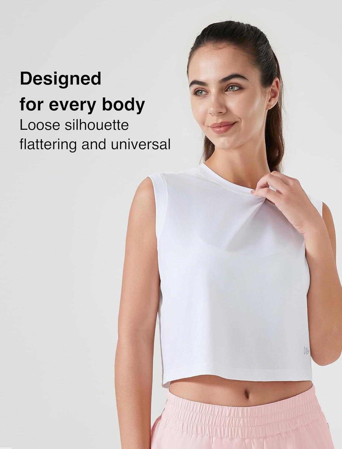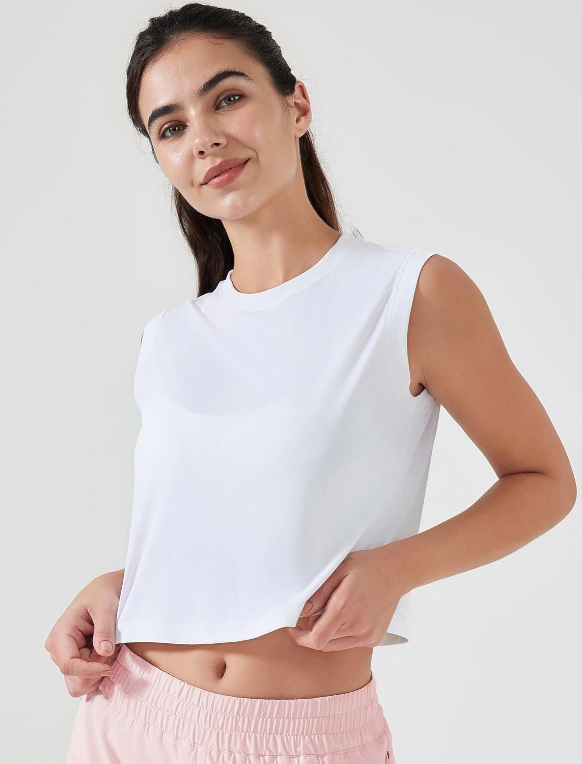 imageYvette Womens Sleeveless Crop Tank Tops Athletic Breathable Lightweight Workout Tennis Yoga Running Tee ShirtsWhite