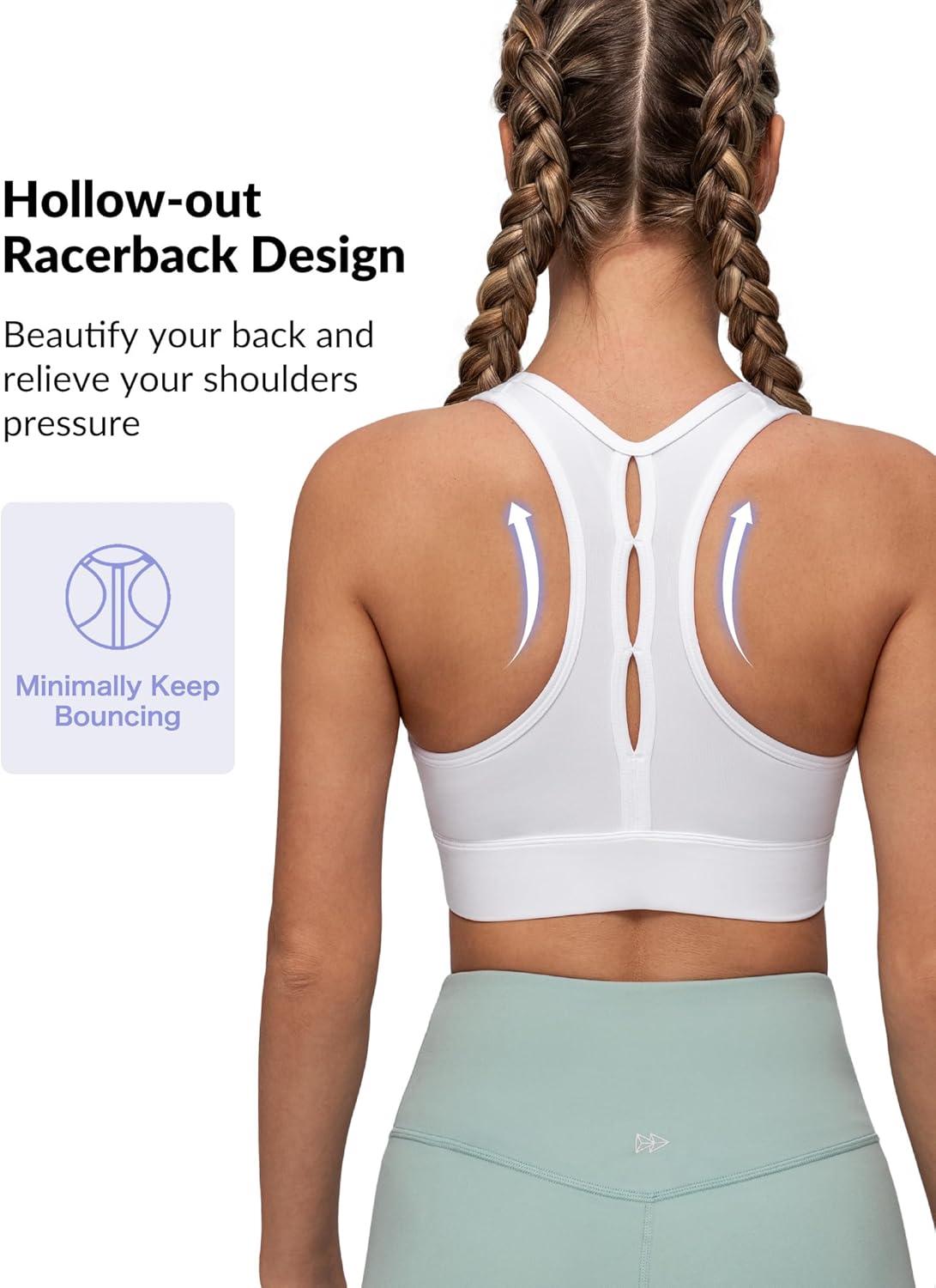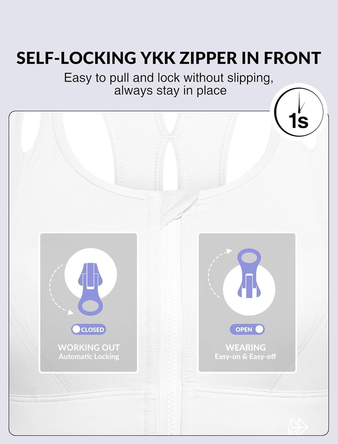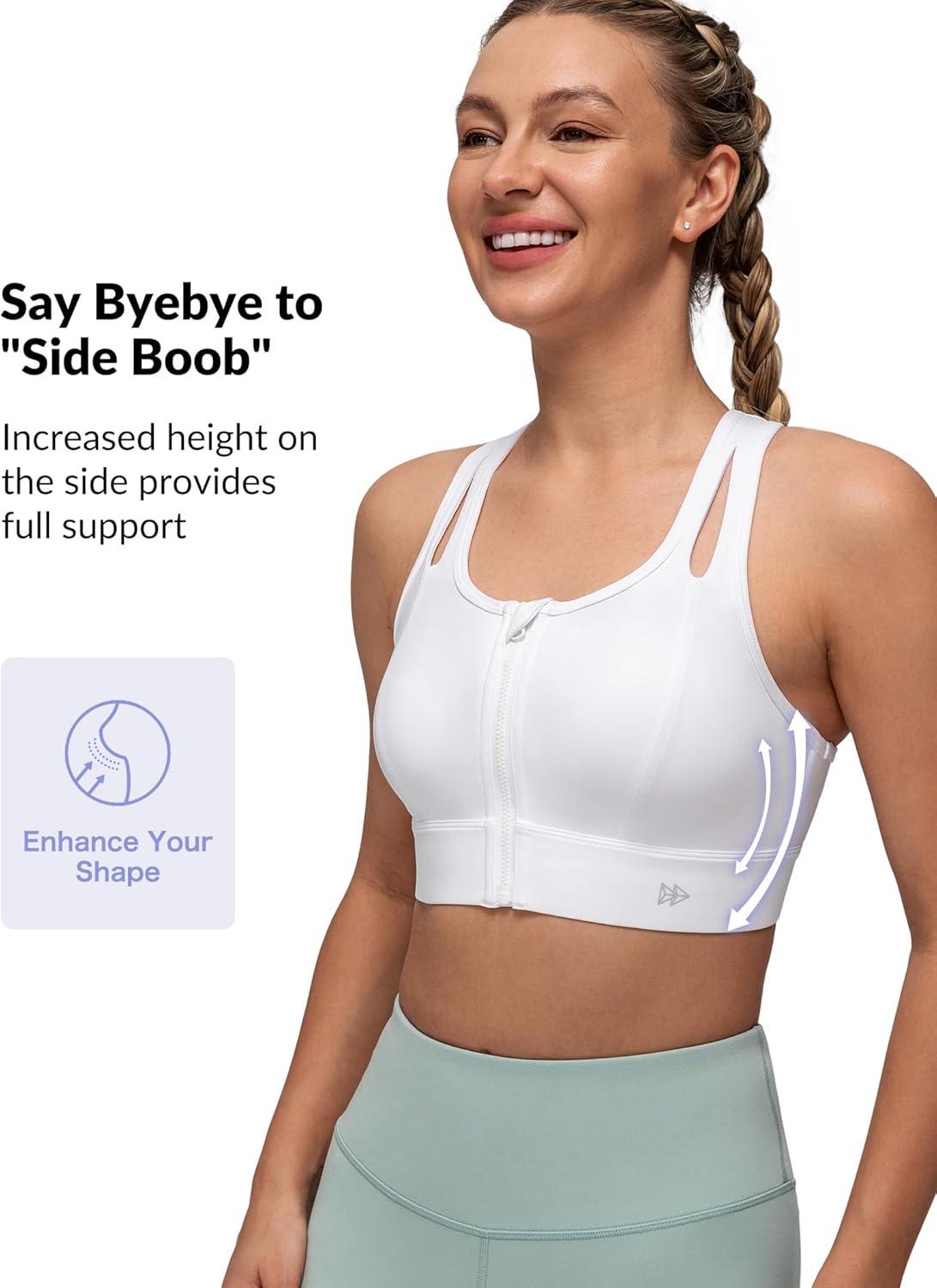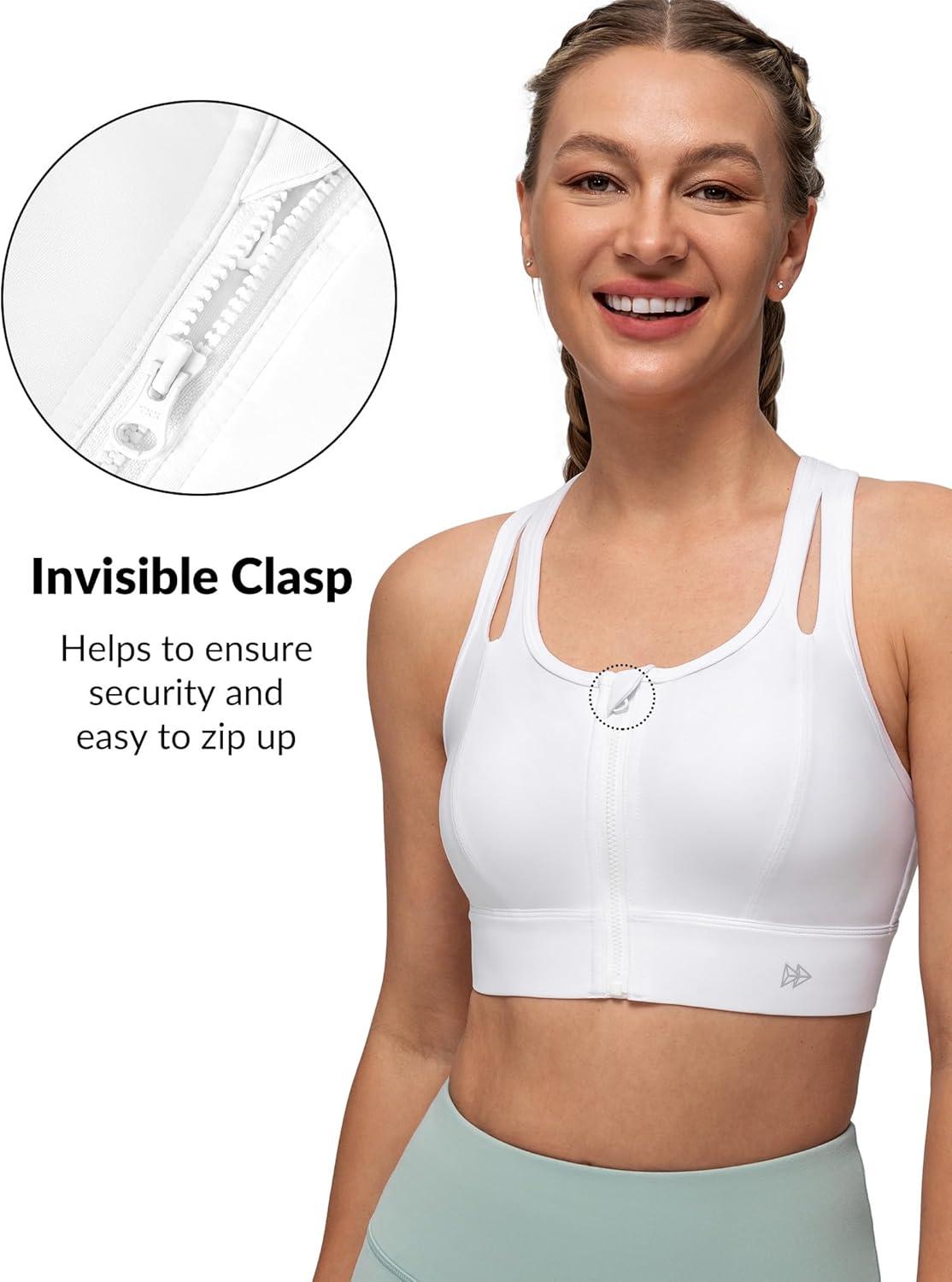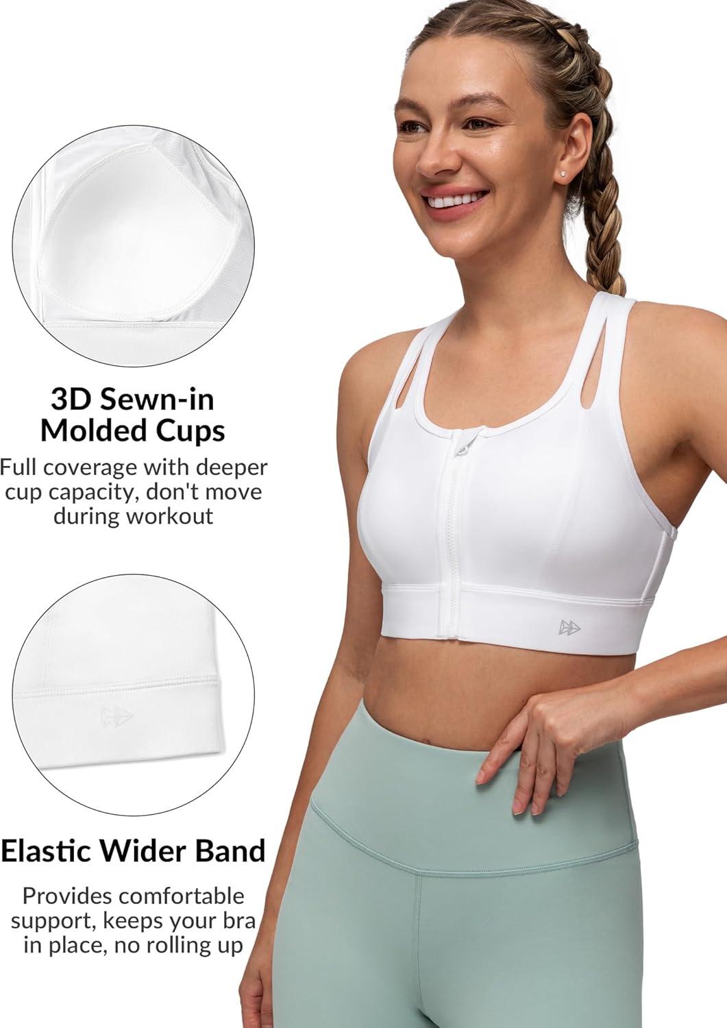 imageYvette Womens Sports Bras High Impact Front Zipper Sports Bra for Large Bust Full Support Racerback Workout RunningWhite