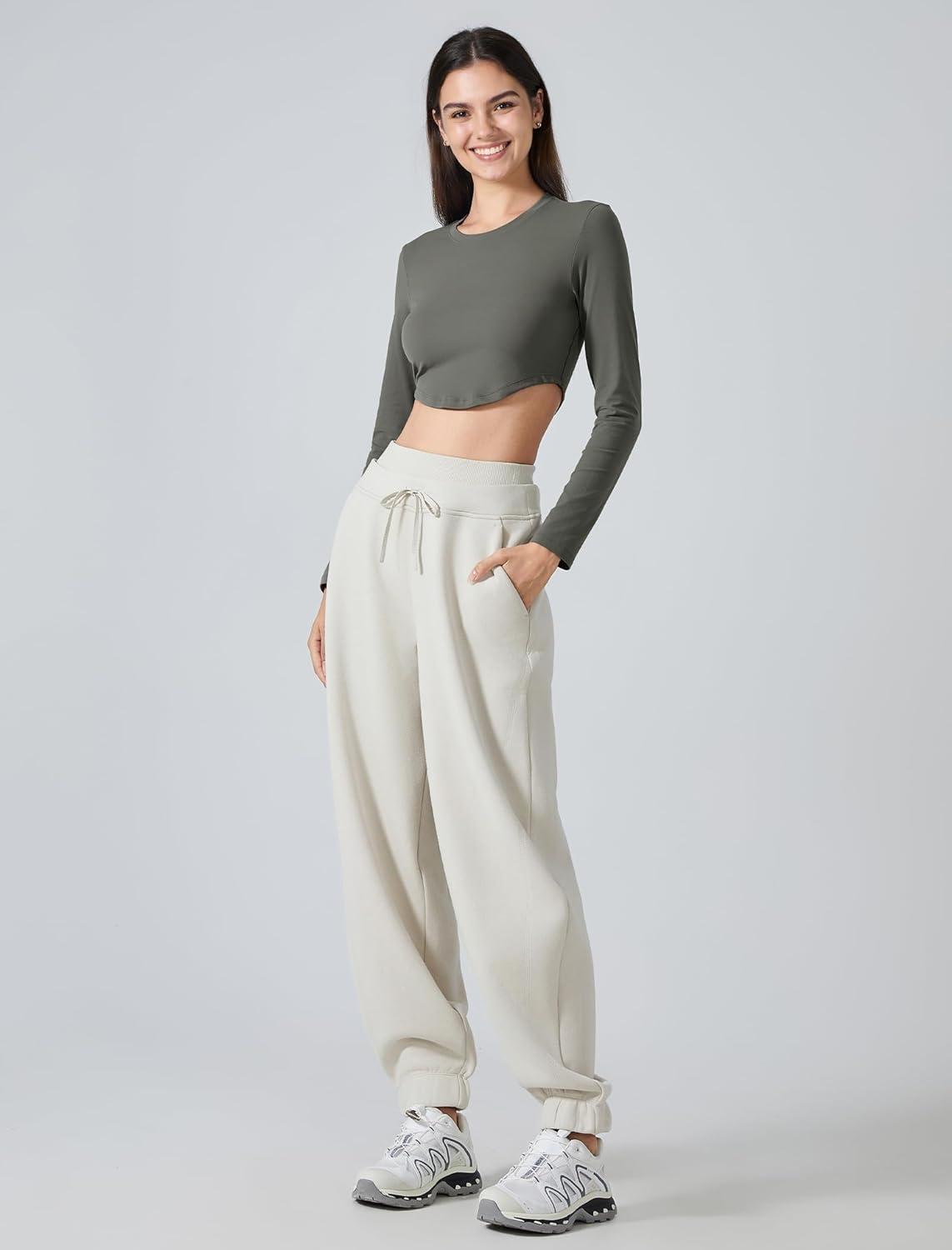 Yvette Women’s Workout Athletic T-Shirts Long Sleeve Running Basic Tee Top Gym Casual Cropped Shirts(Off-white)