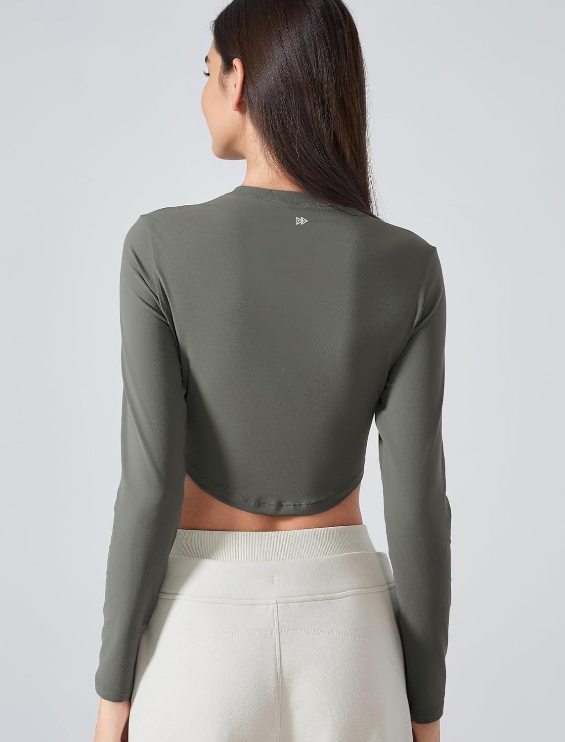 Yvette Women's Workout Athletic T-Shirts Long Sleeve Running Basic Tee Top Gym Casual Cropped Shirts(Army Green)