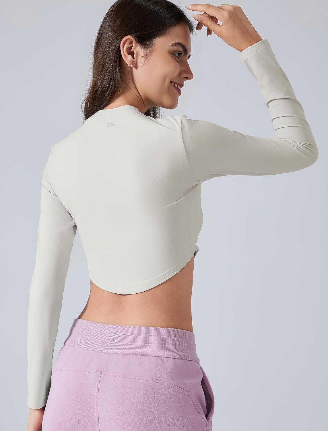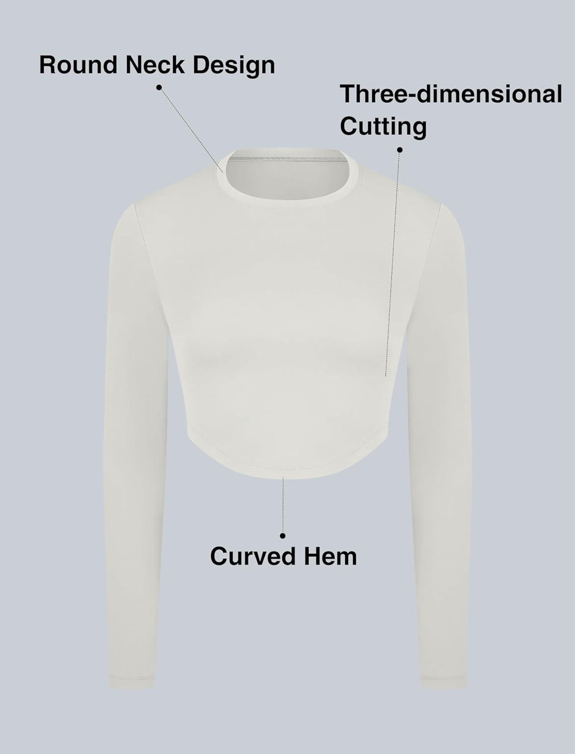Yvette Women's Workout Athletic T-Shirts Long Sleeve Running Basic Tee Top Gym Casual Cropped Shirts(Off-white)