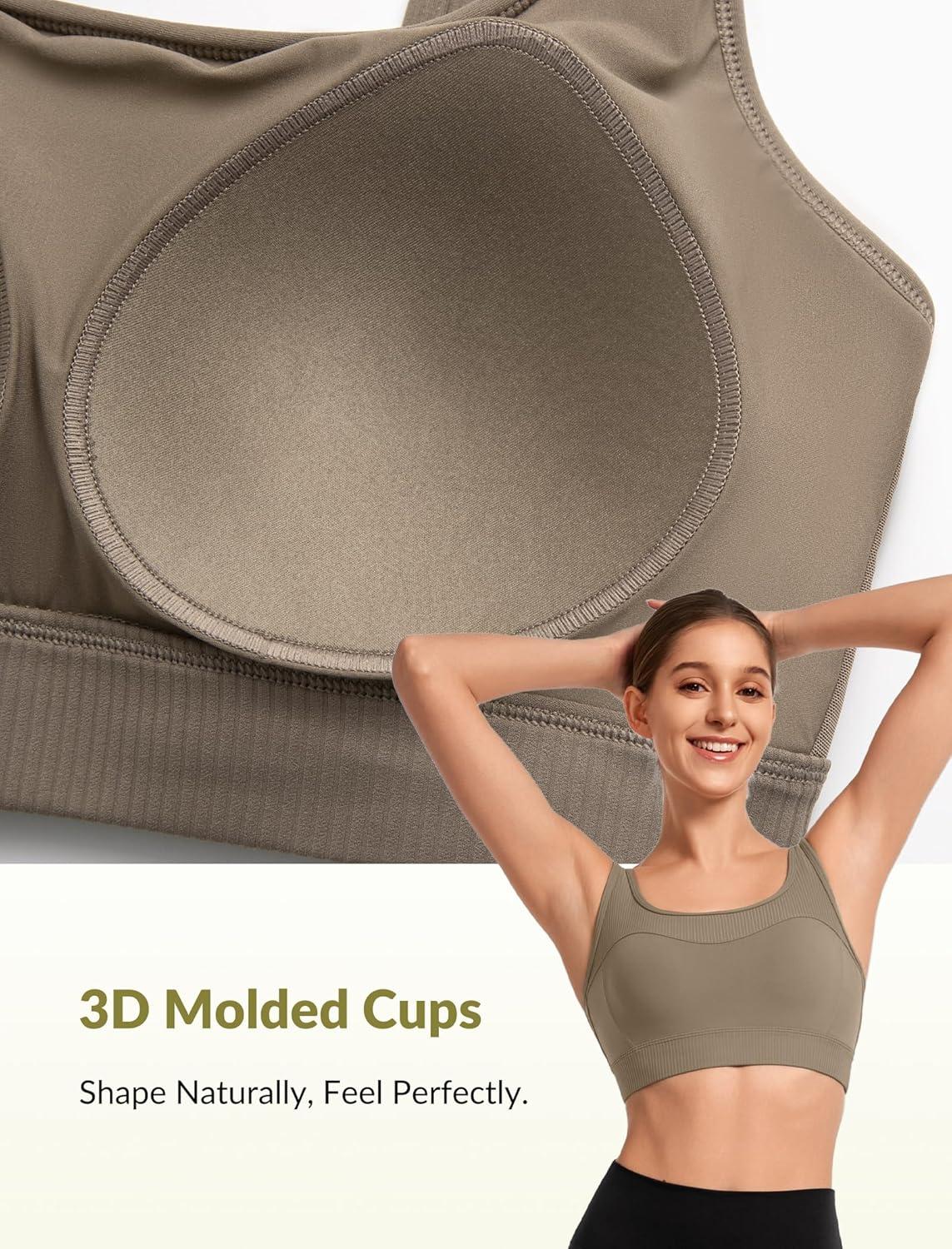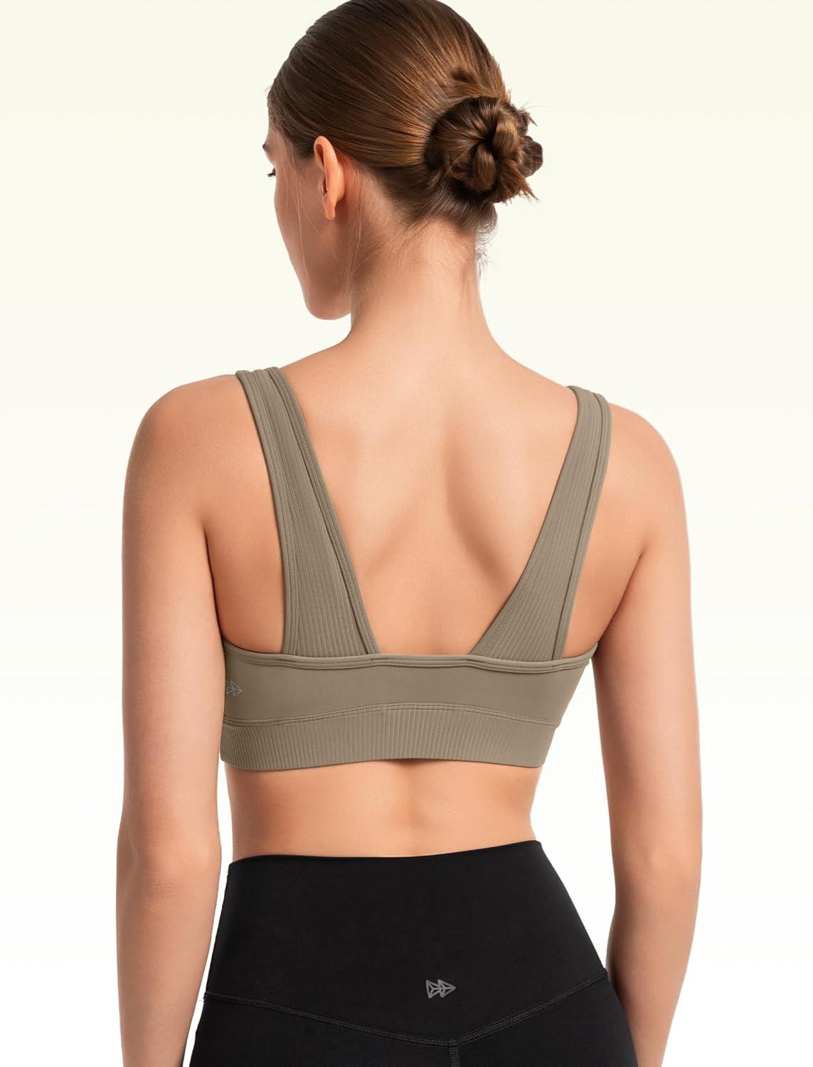 Yvette Workout Sports Bra for Women Rib-Knit Patchwork Design, Elastic Wide Strap(Grey)