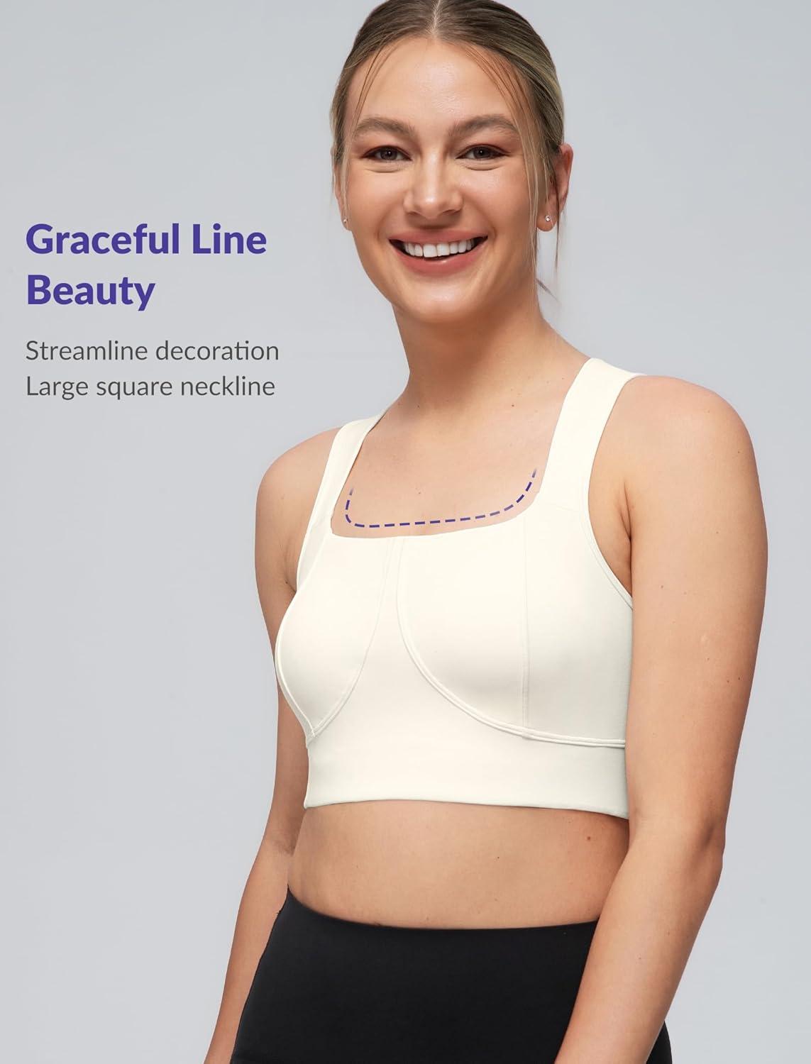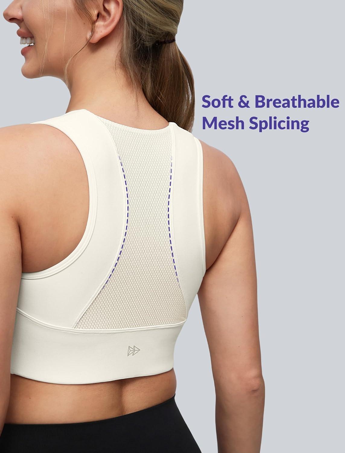 imageYvette Yoga Bra Racerback ampamp Mesh Panels Square Neck Fixed Cups Sports Bra for Women Light Support Workout Tank TopWhite
