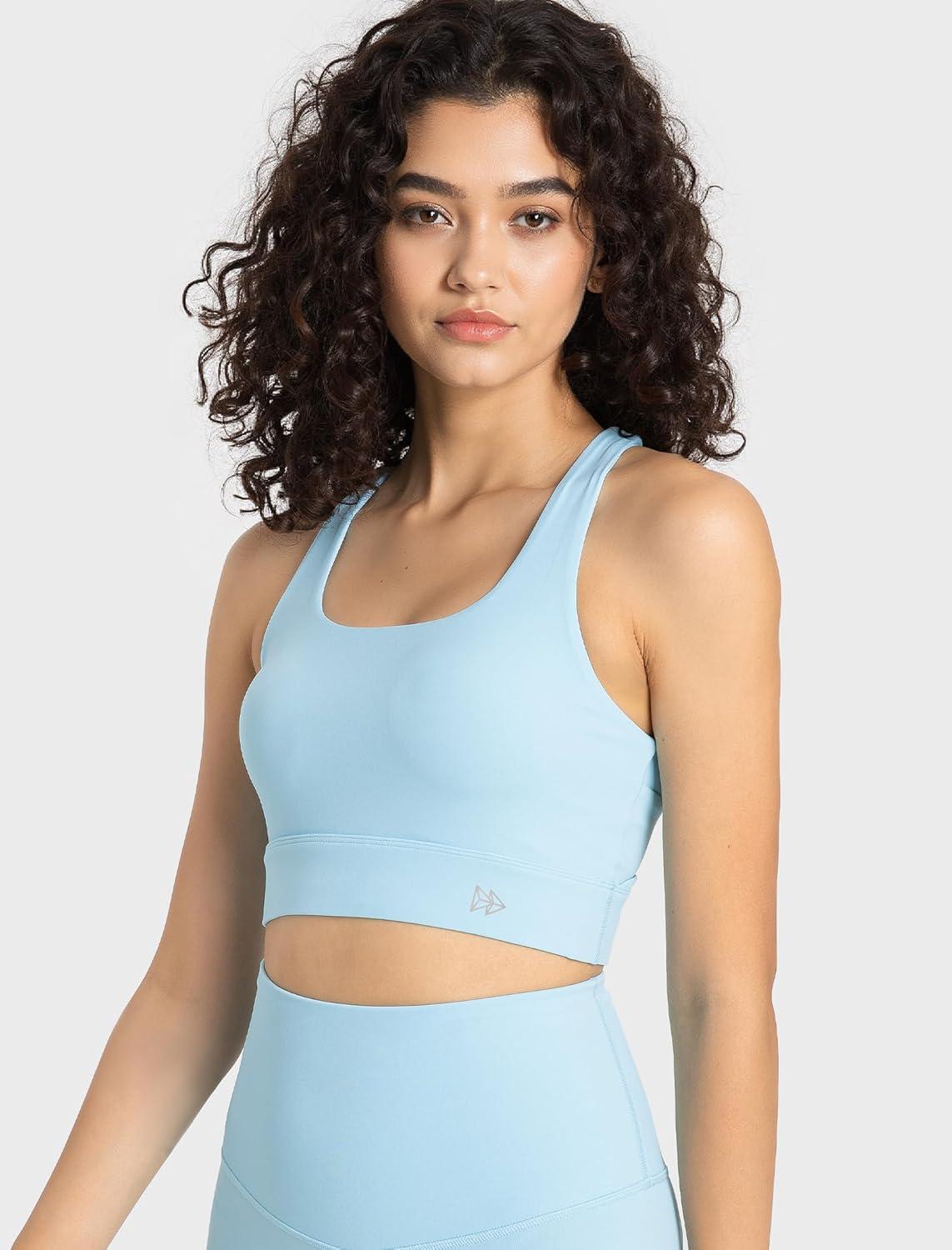 Yvette Yoga Sports Bras for Women Full Support Open Back Sports Bra Crop Tank with Removable Pads(Blue)