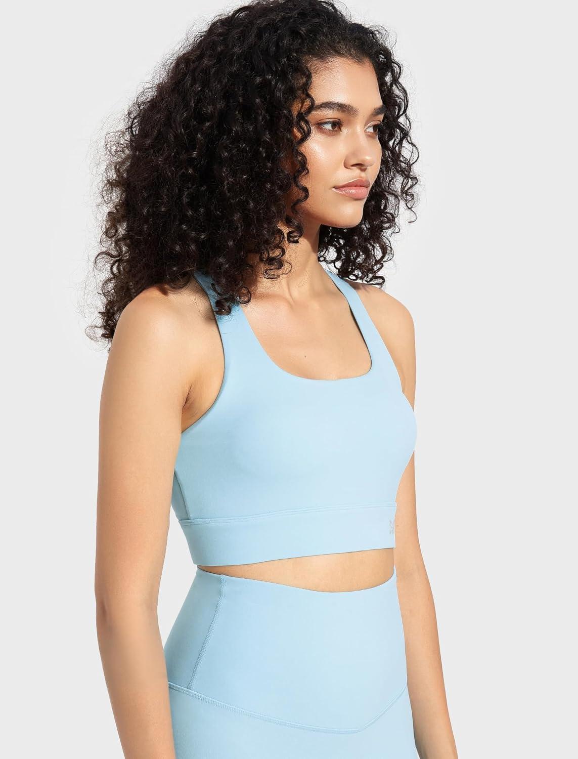 imageYvette Yoga Sports Bras for Women Full Support Open Back Sports Bra Crop Tank with Removable PadsBlue